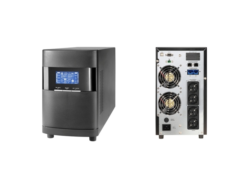 От типа ИБП напрямую зависит, от чего он может защитить подключенное оборудование. Stark country 3000 online 8А конструктивно выполнен по технологии двойного преобразования (On-Line). Это максимальная защита. Двойное преобразование полностью устраняет все нарушения и неисправности электропитания, возникающие во внешней электросети. Выпрямитель преобразует переменный ток, поступающий из внешней электросети в постоянный ток. Этот ток заряжает батареи и питает инвертор. На основе полученного постоянного напряжения, инвертор генерирует переменный ток чистой синусоидальной формы. Приборы нагрузки получают электропитание именно от инвертора. Подключенное оборудование полностью отделено от внешней электросети, но получает при этом полноценное электропитание. В случае исчезновения напряжения во внешней электросети, инвертор использует электроэнергию, запасенную в аккумуляторных батареях.